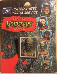 The Mummy – Classic Universal Monsters USPS Stamp replica pin / tie tack – Boris Karloff – Postal Brass ($8)