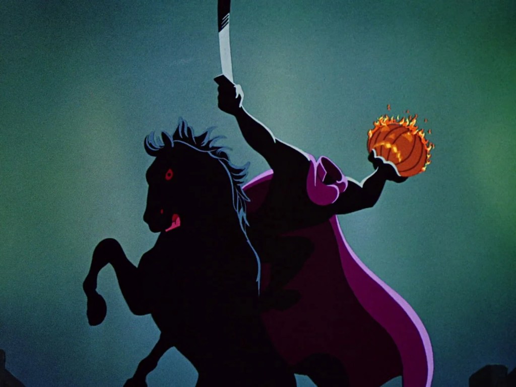 Stsrting with my personal fave from Disney’s Adventures of Icabod and Mr. Toad, 1949. The Headless Horseman wore a fiery pumpkin head on top his shoulders and terrified the poor ‘ole school master Icabod Crane by chasing him down and throwing his own head at him. It’s one of the most iconic scenes in animation and pretty darn scary for Disney.