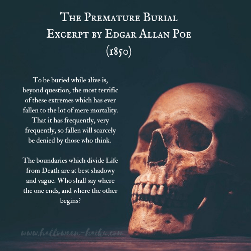 Fun Facts: Poe himself had an obsessive fear of being buried alive do to catslepsy, a state where someone occasionally falls completely still and is unable to move or speak. There were a few cases of it happening during Poe’s lifetime that made the papers. No doubt those stories left a huge impression on the author.