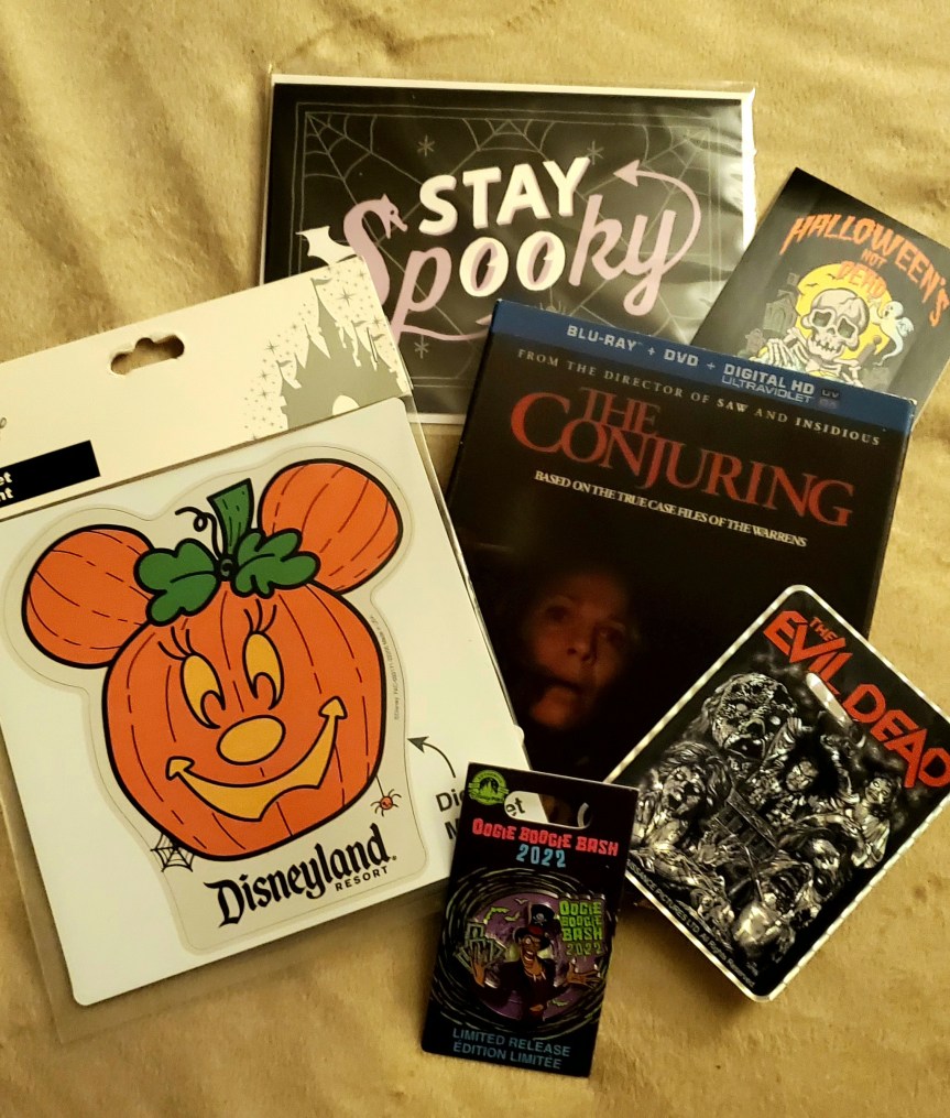 Disney Oogie Boogie Bash Pin from 2022 Disney Halloween Die Cut Magnet The Conjuring Horror Blu-Ray/DVD Combo Evil Dead Sticker Halloween buttons/stickers Halloween card